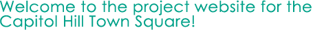 This website is intended to keep the Capitol Hill community informed on the status of the project. Please visit the site periodically to stay up-to-date with project developments, follow the planning and design process, share your ideas, and view drafts of the planned improvements.